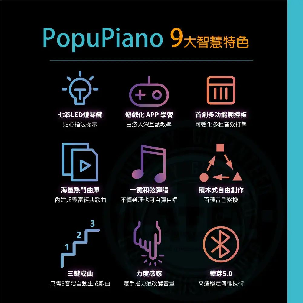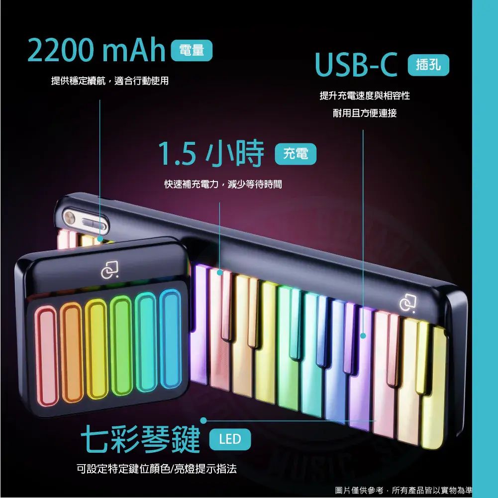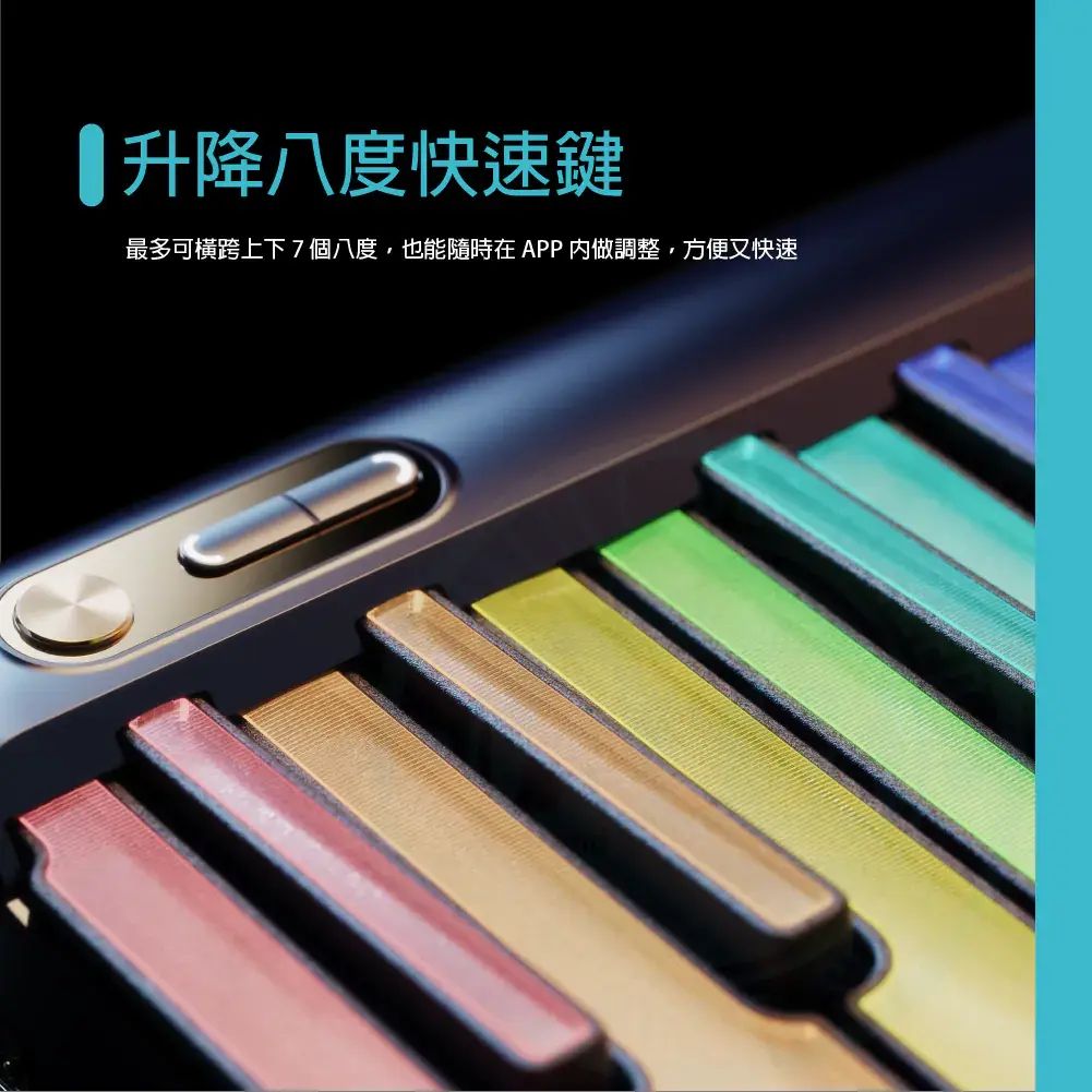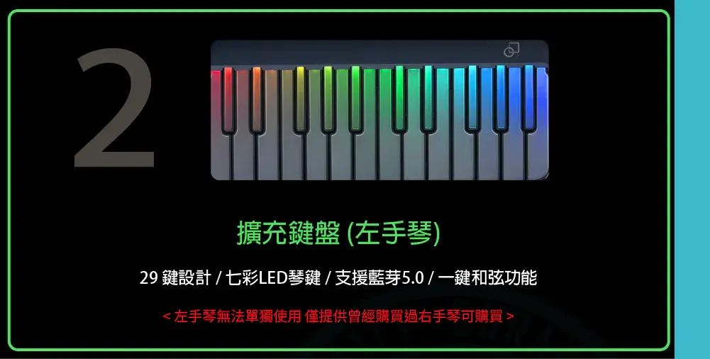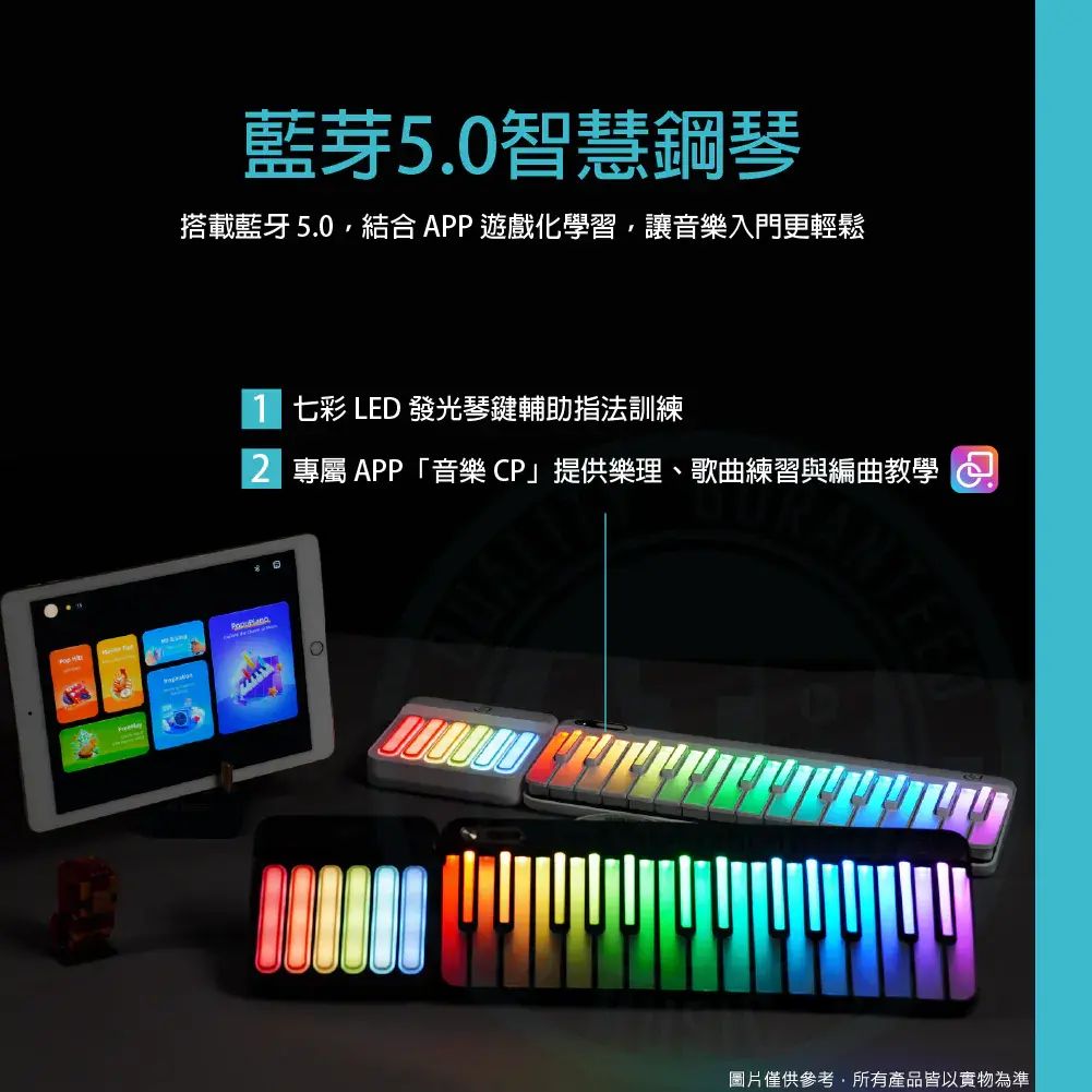 ◆ 藍芽5.0智慧鋼琴,搭載七彩LED智慧琴鍵