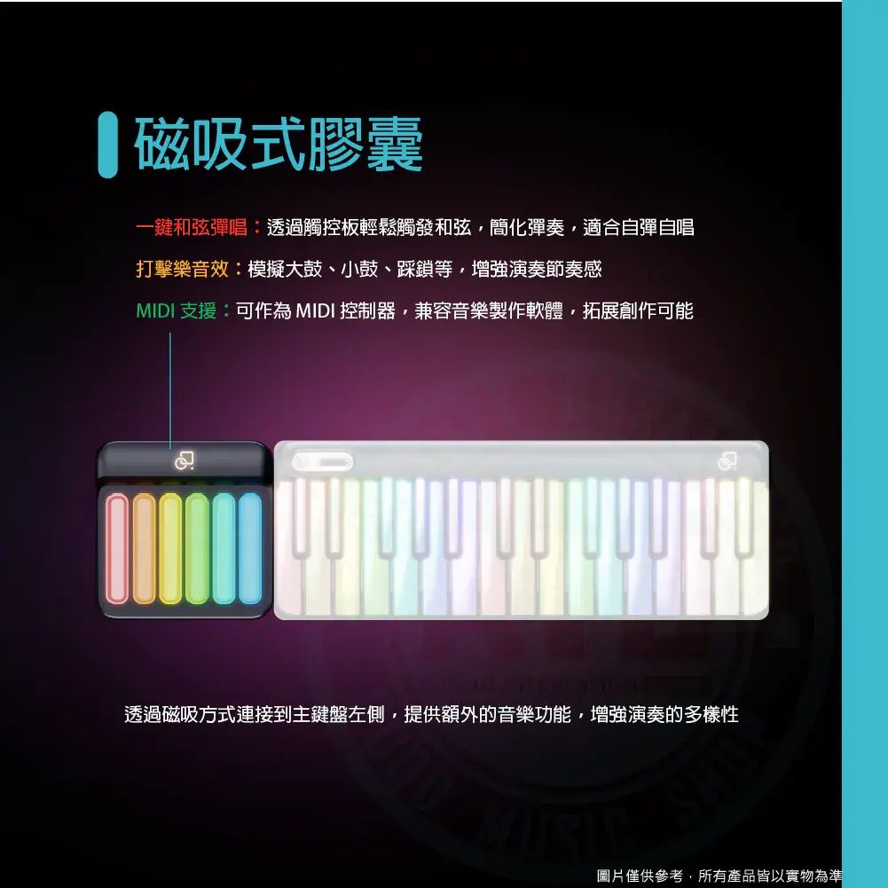 ◆ 多功能膠囊(觸控打擊板),一鍵和弦實現自彈自唱